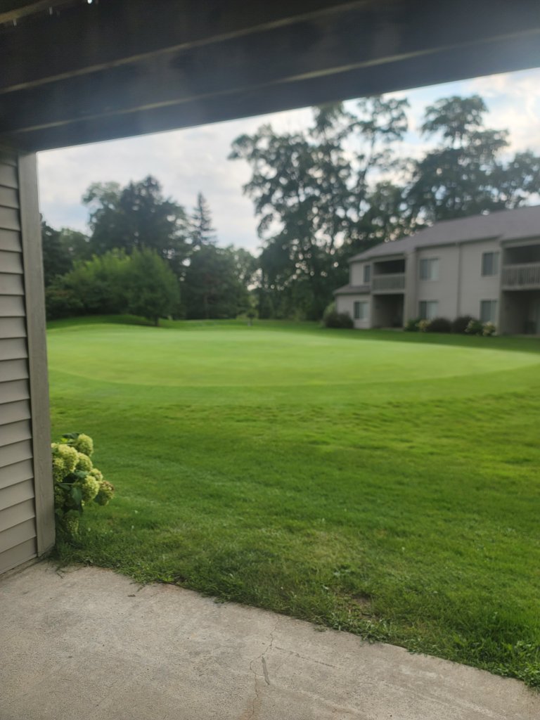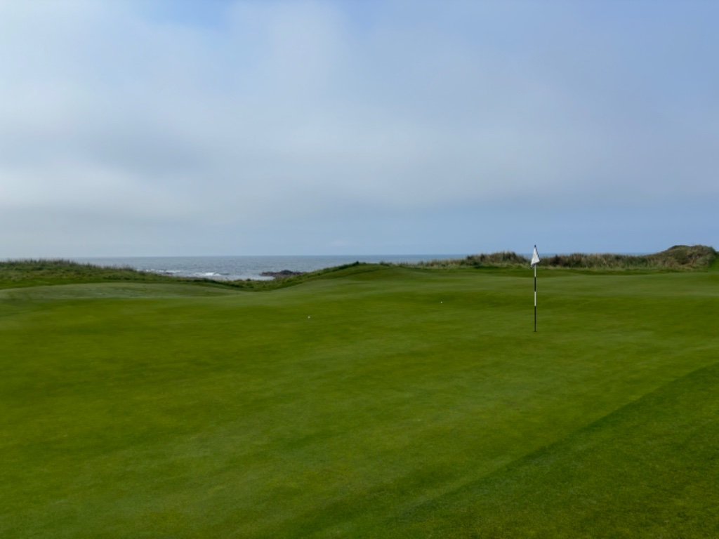 Patches of crab grass all over the green, along with no grass, dead grass, cracked ground, etc... I 3-putted more times than I'd like, because you couldn't get a good roll. You'd have your putt lined up, its rolling well, hits the crab grass and either stops or kicks in another direction. unplayable !!