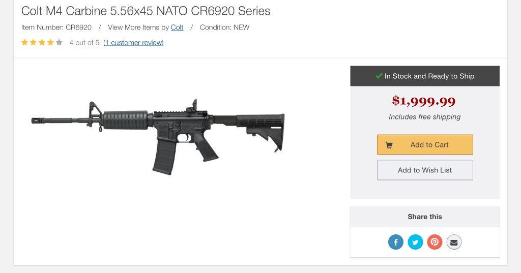 BTW, last year my wife balked when I told her I was buying another Colt 6920 to keep in the safe and possibly flip if needed for a nice profit if things get goofy around the election. Payed $899.