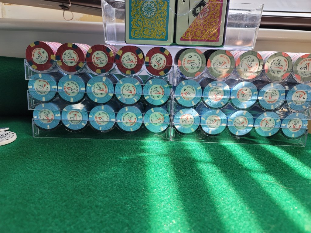 I was there Saturday with a chipper who sells a lot of chips here and we were about to leave Paris. I was sitting in a 1/3 game and he walked up to me and asked if I was ready. I have my travel bag filled with chips and he has his knapsack filled up also so It's about time to leave. The floor is a few feet away from us and he looks kind of nervous and whispers in his mike, "It's right in front of me". I'm totally paranoid to begin with and now I'm thinking he's talking about us or my bag and that security is on their way over. I'm waiting for my turn to fold so I can start walking out when he says into his mike, 'My left foot is one inch away from it'. Now I relax because I know he's not on to us. I get up to see what he talking about and it turns out there was a black chip on the floor.