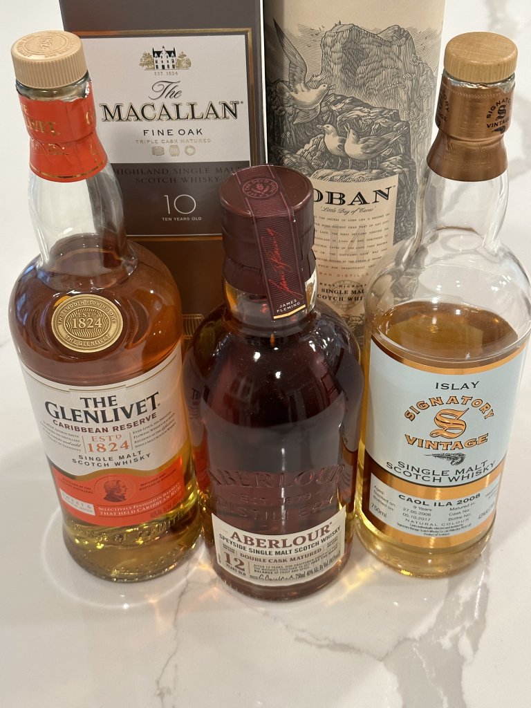 While they liked the Caribbean Reserve, the Oban 14 was the clear favorite, followed by Aberlour 12. Although they did enjoy the beach bonfire taste of the SV Caol Ila as a concept. No one mentioned the Macallan.