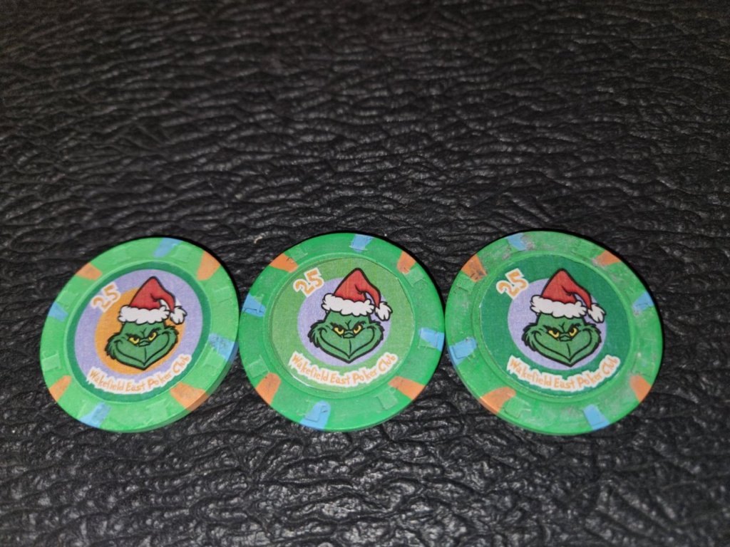 As the Grinch has a Santa hat on I believe that fills the quota of 1 Santa hat/chip set. Give that red 5 up to Rudolph and his red nose!