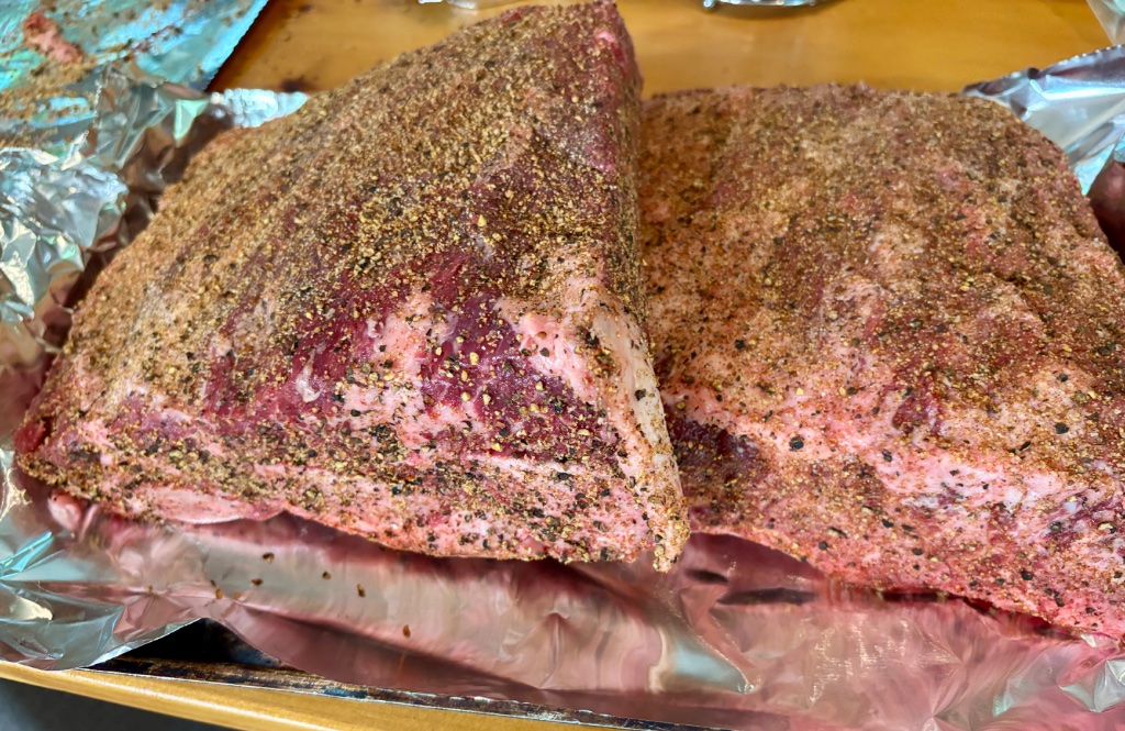 Last time I dry brined it as I always do, uncovered in the fridge to get a dry surface. However, when reverse searing in a gas grill the surface dries out even more. It also swells into a curved surface, making it harder to sear. The end result was a hard, ham-like "skin" on the meat, with partial burn marks from the failed sear.