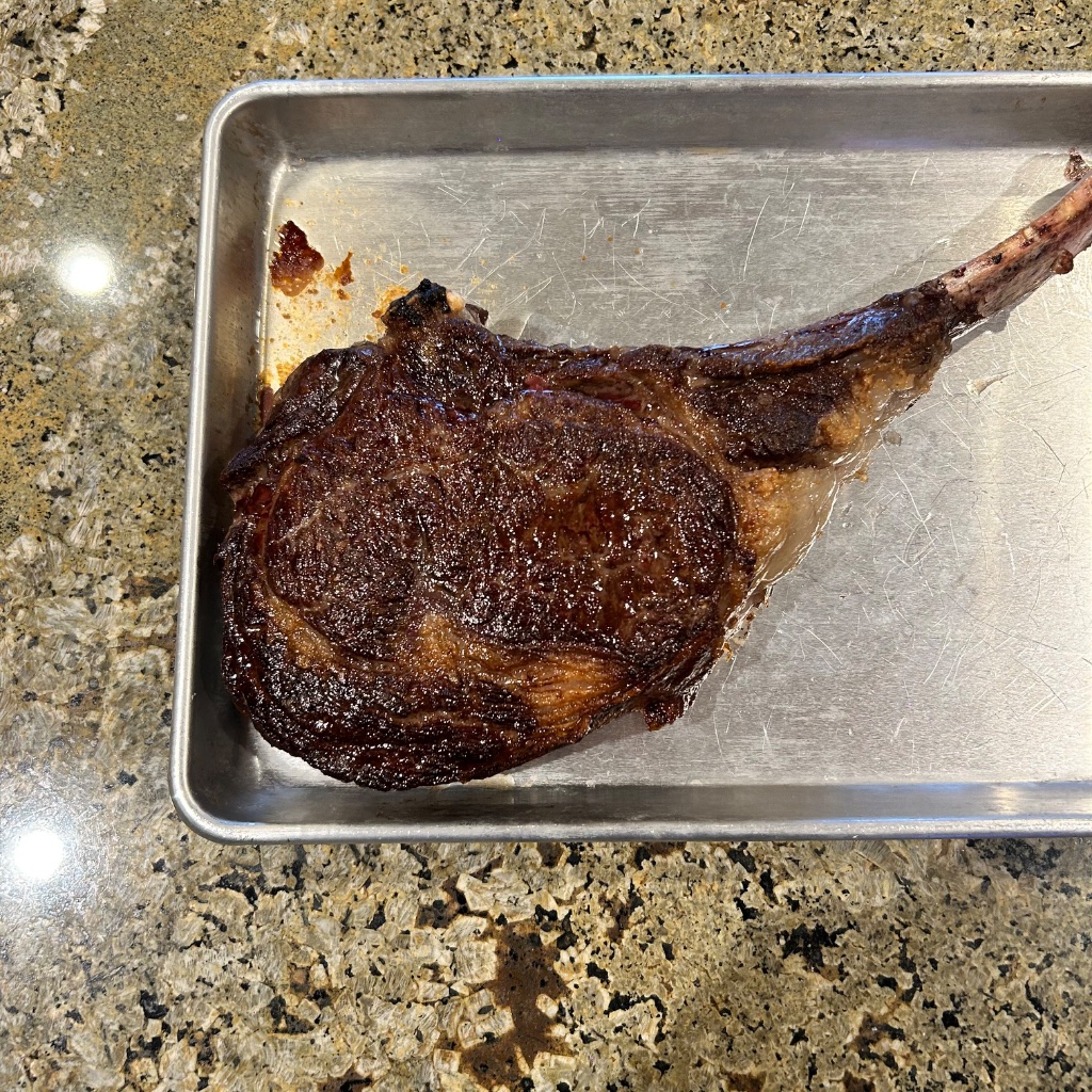But! And this is a big-ass but! This reverse seared medium made tomahawk was way jucier and more tender than any pre-seared medium-rare I have ever done! I don't think I'll be pre-searing tomahawks again any time soon!