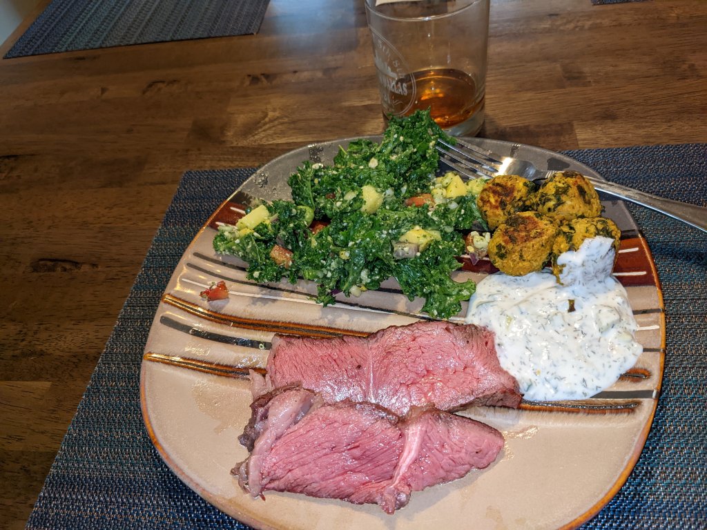 This... Colleen made falafel balls and tzatziki sauce. It paired great with the salad and steak