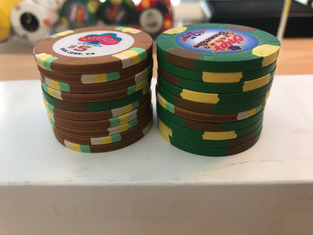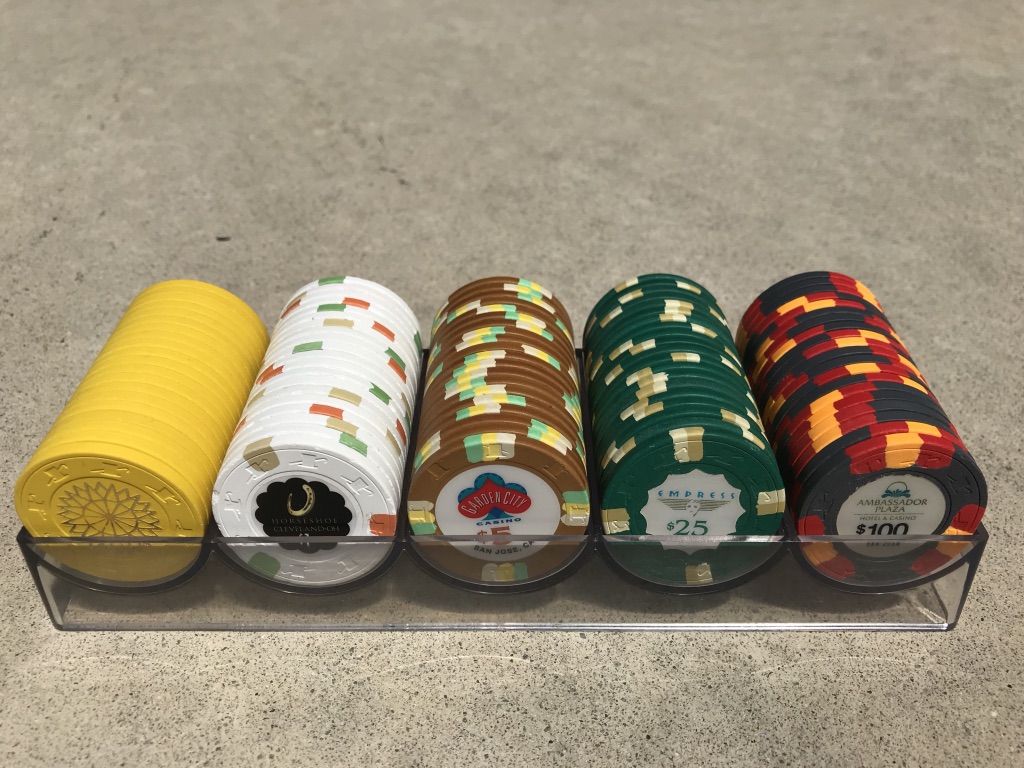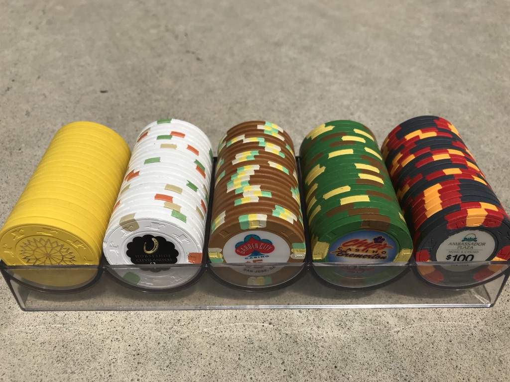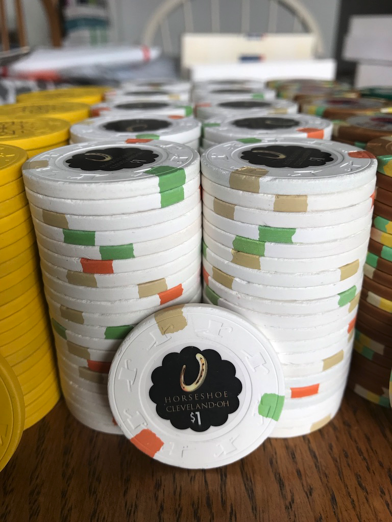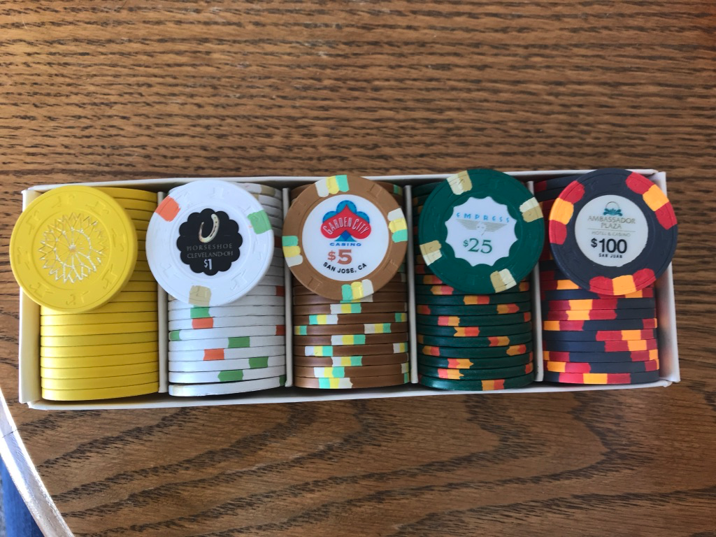 EDIT: Excuse the stand-in $25s in the first image. They're GC $2s. Just the only dark green chips I own.