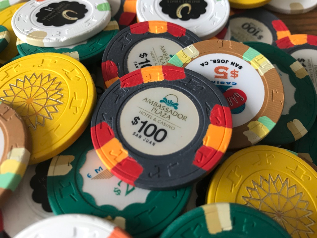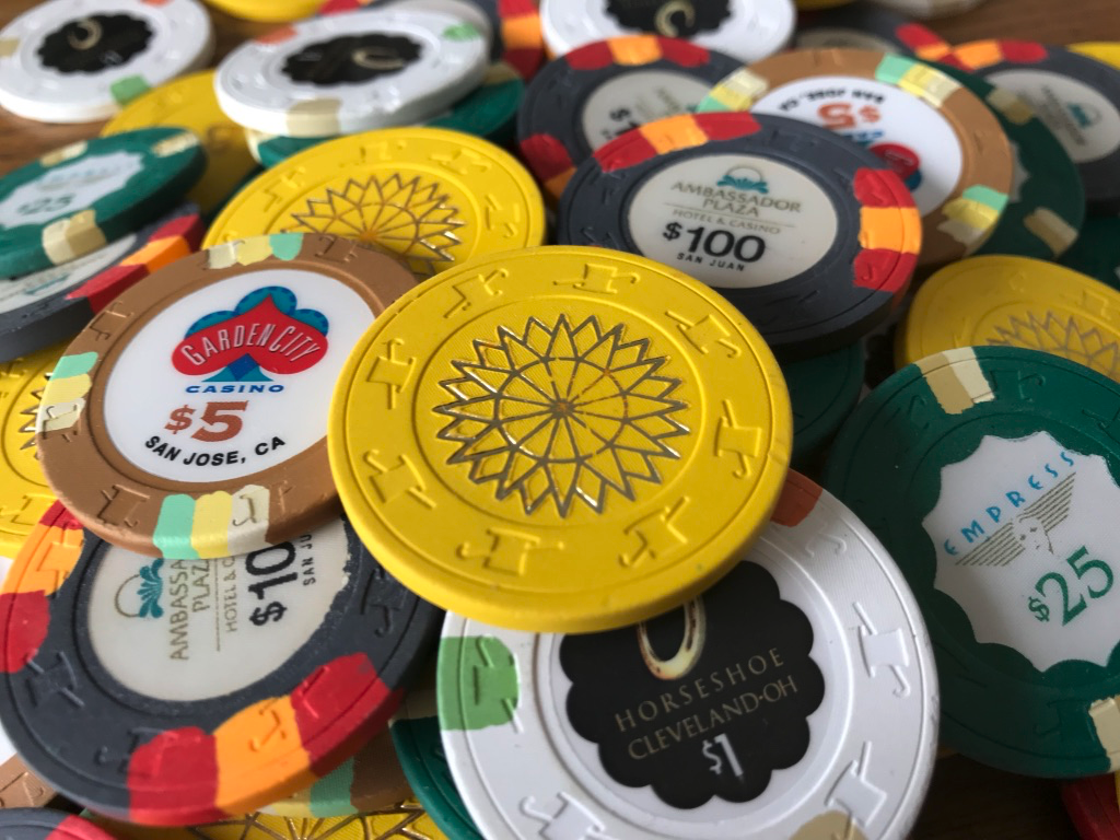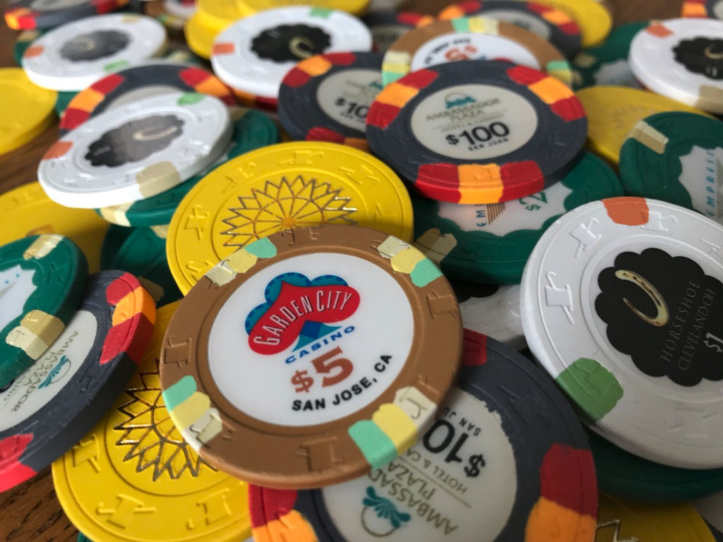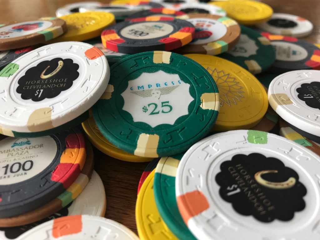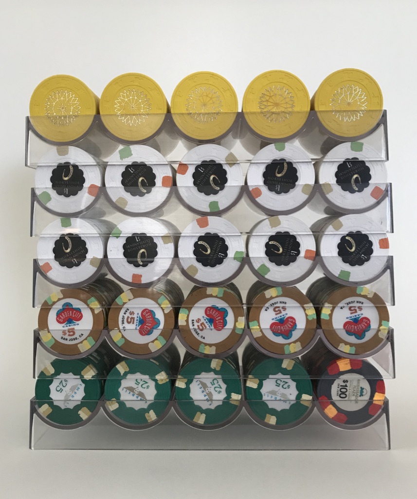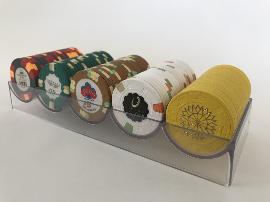 EDIT: Excuse the stand-in $25s in the first image. They're GC $2s. Just the only dark green chips I own.