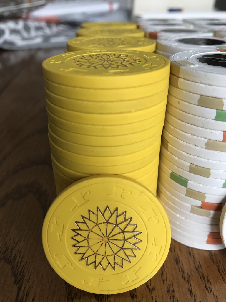 Initial impression: I like the new chips more than I expected. I like the colors and the chips fit the theme well. I still prefer the Empress chips, but not having to mill is a HUGE upside. The new ones would be easy relabels.