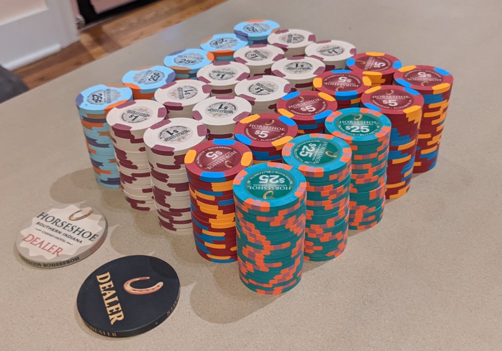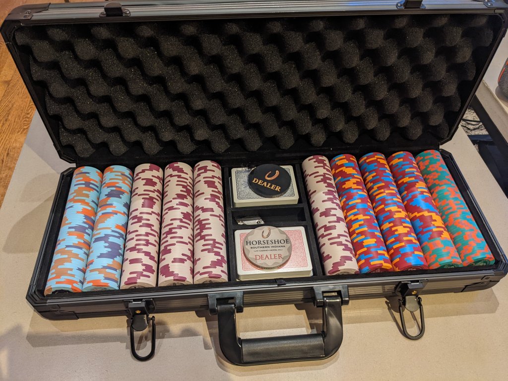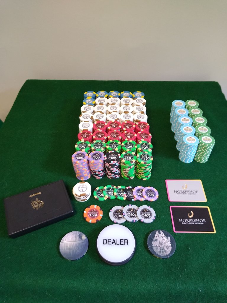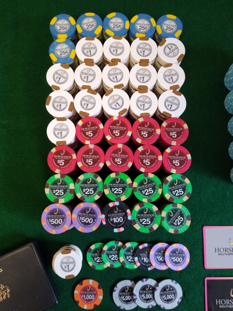 5 days before my one year anniversary on PCF and got the last of my HSI orders in for my primary set. Could maybe do with another rack of $5s but I'm happy for now. 25k bank (slightly short but rack of $5s would take care of that or I might just pick up another single $500 so I don't get tilted!) or 40k if I include the $5ks. Should cover any game I ever run by a long way but nice to have options. Will need to pick up another couple of racks of HSI roulettes but I'm not in a rush for those. The .25c are @Gear labels. Had to piece it together bit by bit for cost purposes and bought of to many people to mention but thank you to everyone who helped me out, especially with the many extra chips people added to orders. Picked up some from Jim @TheChipRoom in the sale as I started building the set late. Then picked up a lot over the following months at tcr prices from various members on here as people shed what they didn't need. I will give a shout out to @Don Clay who kept coming up with odd numbers of chips to fill out barrels for me and @DirtyTIVA who helped finish of my set, set me up with the higher denom chips and was all round amazing in getting me across the finish line. And also a thanks to @Ocharacato for sending me a couple of matching cut cards. All I need to do now is convince @Himewad to include the Hsi button in the next group buy! Not as big a set as a lot on here but I'm in my happy place.