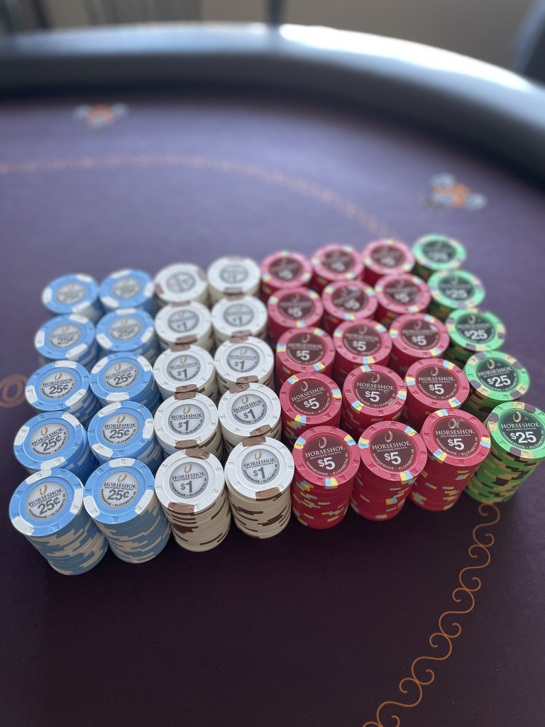 The secondary rack of hundreds is for when the 25+ are used for tounament chips and then this leave the secondary 100s for alternative cash chips in case I exceed the 5's however unlikely that is.