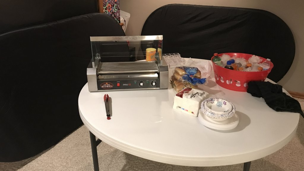 I filler her up with dogs before the 1st break and when break time rolled around I was the only one eating a dog.