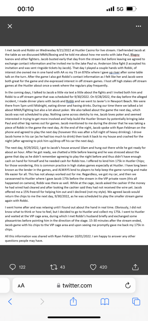 One of the worst player I have ever seen in the steam? (Stupidity)Borrowing money from multiple players including Robbi. He claimed that only met Robbi twice, and he was the one hook up Robbi to hustler live? Who the fk meet you twice and lend you money?