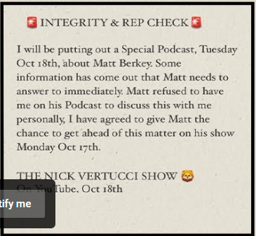 Nick was actually on Berkey's podcast earlier, had watched the very end of him on it and meant to rewatch it later.