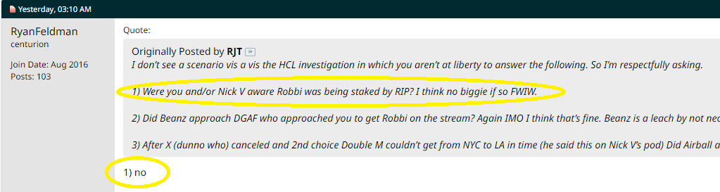 What I found interesting is Ryan is replying in the thread focused on investigating him and I just came across this: