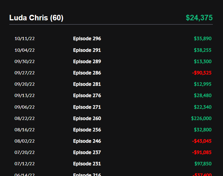 Circling back to Luda Chris, it appears he is a slight loser on HCL streams. Maybe we were all wrong and there never was foul play. Maybe there was and they got spooked by Postle-gate. Maybe once Feldman got HCL going, he was back on his feet, had a point to prove, and went fully legit (save for the illegal home games during lockdown, but I digress).