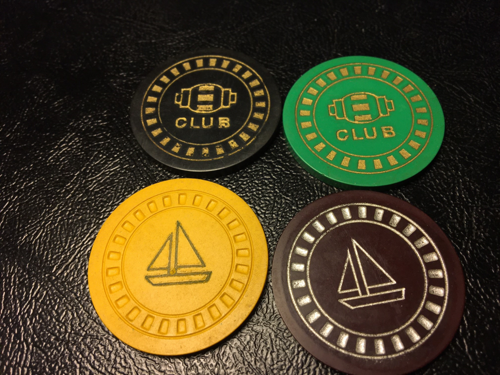 You know you might be on to something. The dark blue sailboat chip feels different, as it lighter than most hub mold chips. I just weighed it and it is just shy of 5 grams, the yellow sailboat is 6.5 grams, and the Hub Club chips are 8.5 and 8.4 grams. The Hub Club and dark sailboat chips have a more reflective and a smoother surface than the few other old hub mold chips I just picked up to compare them to.Is it possible that those chips are actually made of plastic? There are some shiny spots on some of the chips that in the picture anyways , look more like a plastic, than a compression clay.