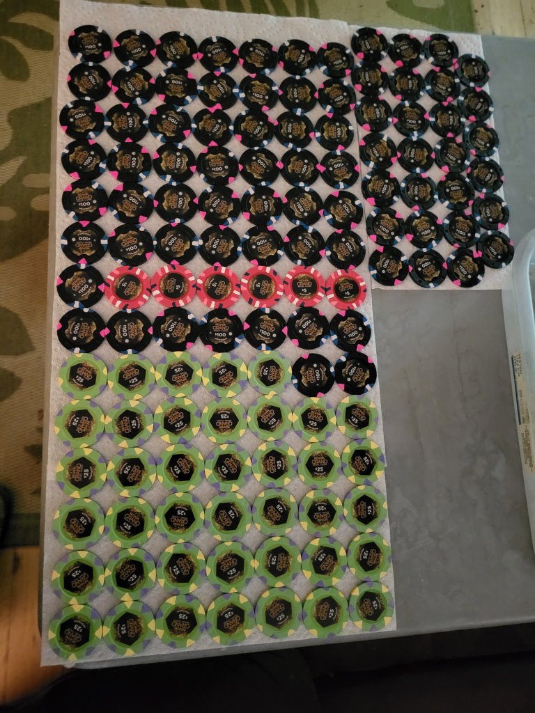 2 tables of freshly cleaned and oiled chips getting dried shortly. I will throw em in the Bay window (natural light) and share.