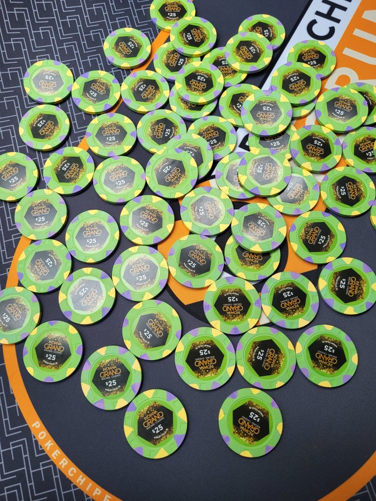 I know, I should add pictures, but too lazy to get the chips out again at the moment after doing some cleaning, but I haven't heard anyone mention stack height. I was pretty surprised to find that the stack height was very consistent among the IG chips for me. This is comparing sec $1, pri $5, pri $25, pri $100, and sec $500 barrels. I guess it speaks to the condition of the primary chips.