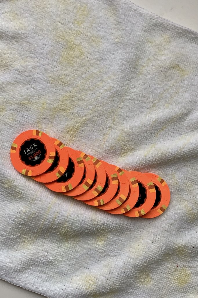 @TheChipRoom, I believe it’s safe to assume that you had no knowledge of the yellow film being present on these chips prior to them being sent out. Question is, what happens now? This stuff is incredibly stubborn and I’ve ran chips through the ultrasonic three times along with hand scrubbing after each with it still being somewhat present. Had no idea it would rear its ugly head again via these beautiful blaze chips.