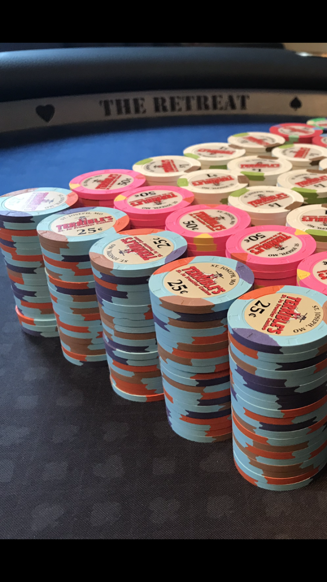 So, that means 1,900 chips will be up for sale immediately. That includes a rack each of quarters, $500s, and $5000s, and 200 to 500 of everything else (and some quantities are adjustable, based on your needs). Everything that is mult-rack and pre-paid, I'll cover the re-shipping. All pre-paid pricing will be rounded up, because I hate calculating pennies. :cool