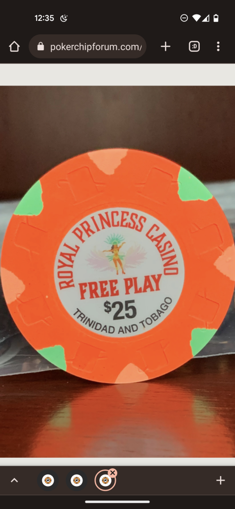 @justincarothers Do you know if the Royal Princess Casino $25 alternative chip is bright blazing orange? (That's what I'm looking for).