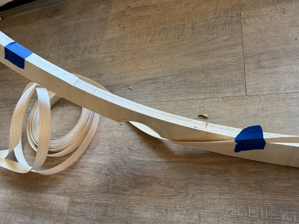 60” with a 3/4” raised rail finished with Osmo oil to preserve the natural wood color. Scuba suede for the rail covering. Maybe in the future I’ll build a 2nd with the burgundy rail.