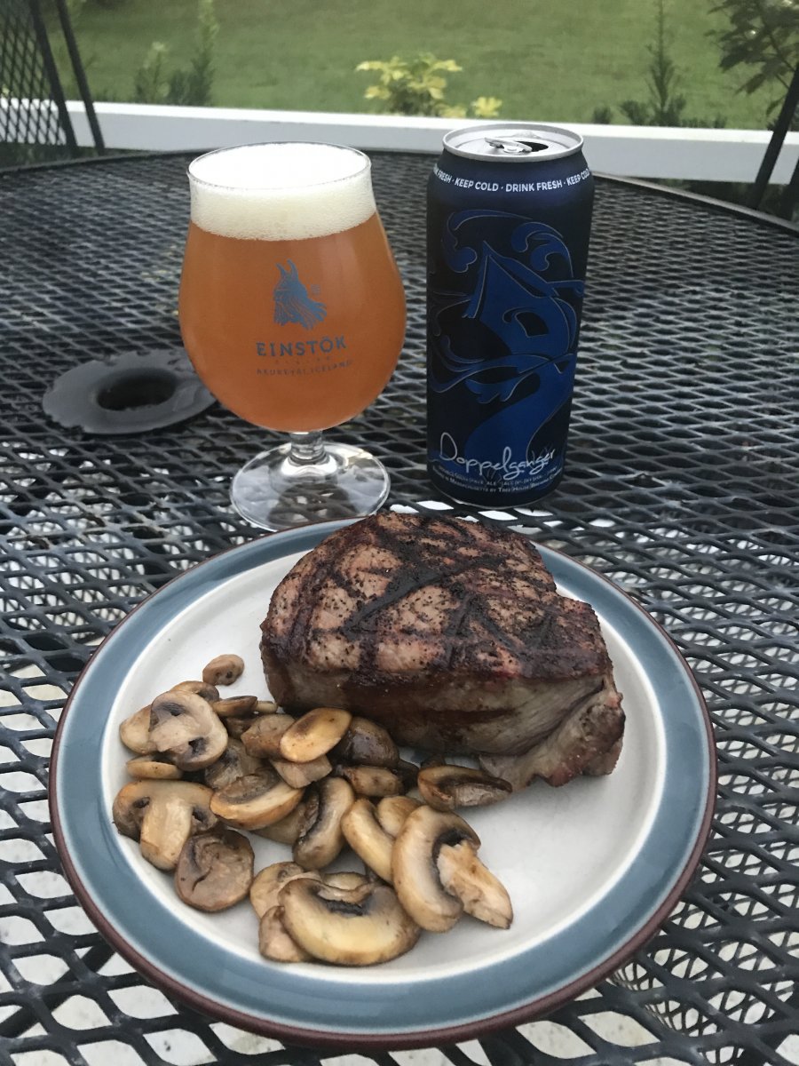 Celebration/partial cheat day - steak & shrooms for dinner with a Treehouse DIPA