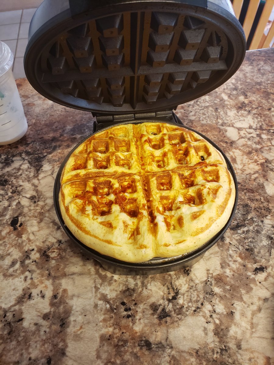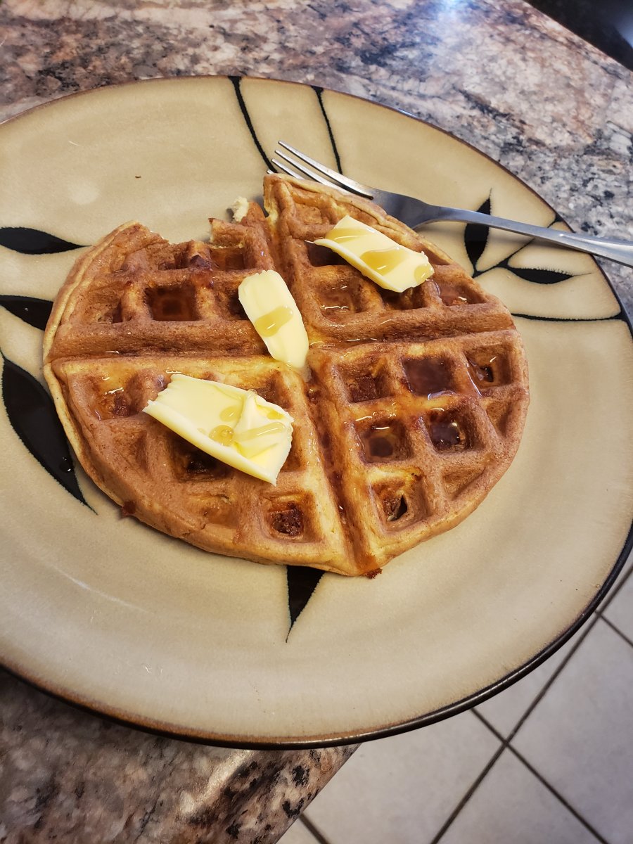 mix and pour in waffle iron. (makes a decent size waffle. I actually double the ingredients for a full meal and make 2 waffles)