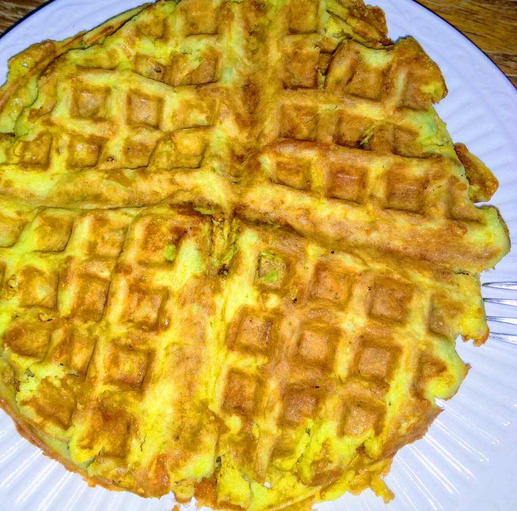 1 egg, 1/2 c of shredded cheese, 1 tbs of almond flour, and 1/2 tsp of baking powder per waffle. I added a half of avocado to the mix.