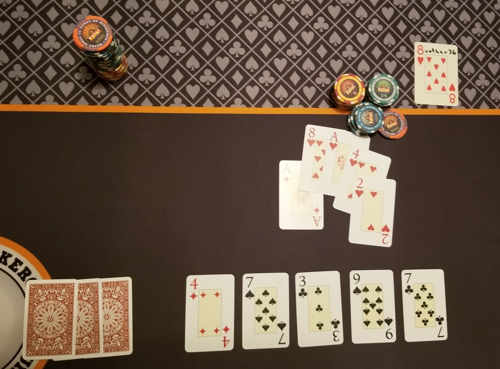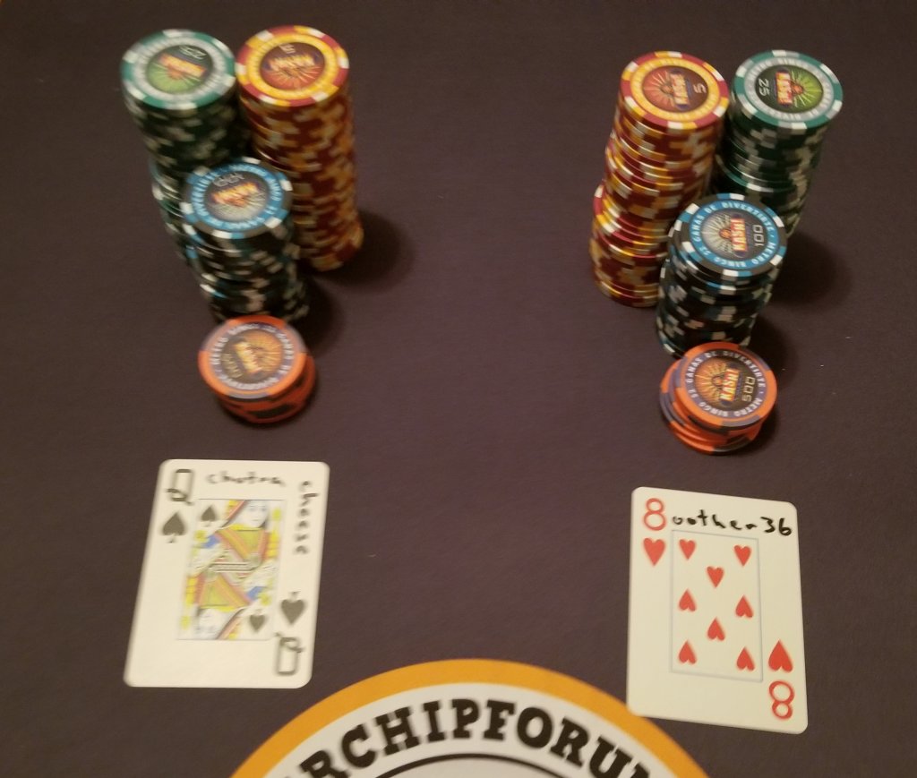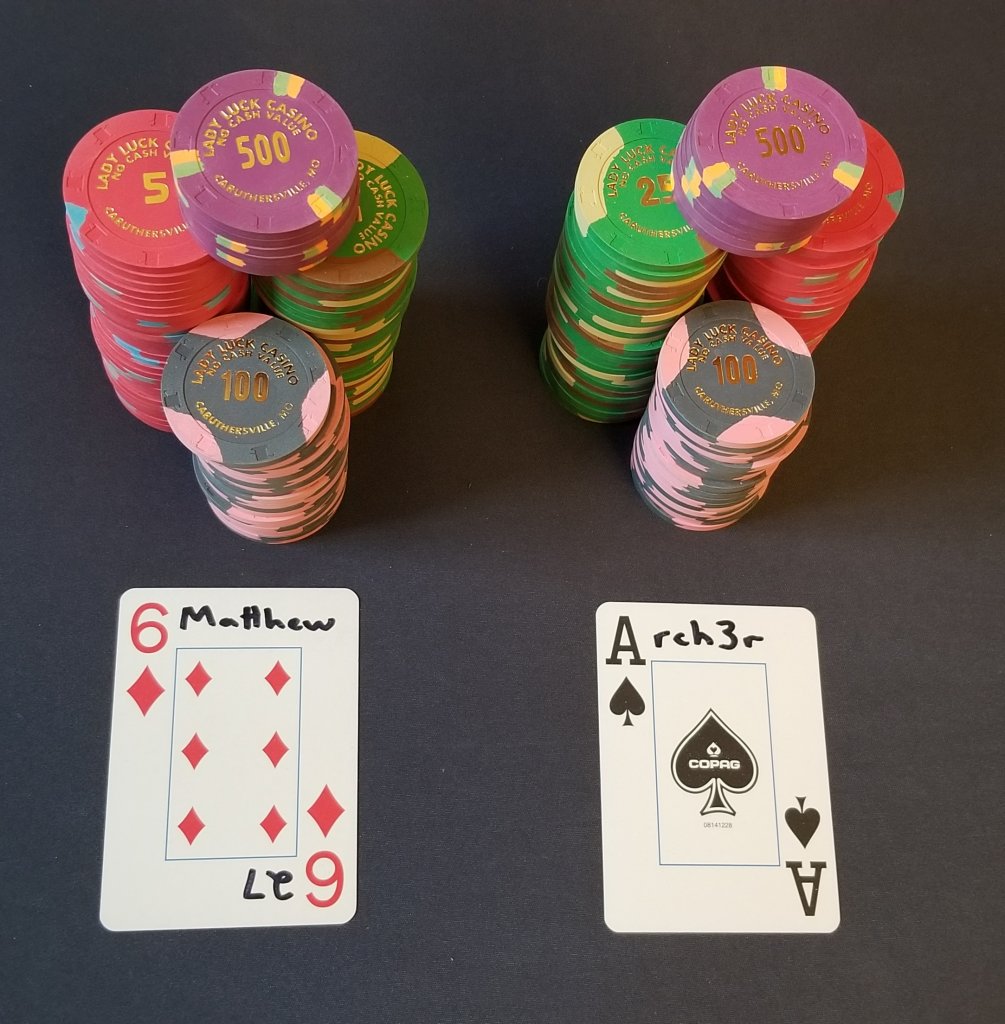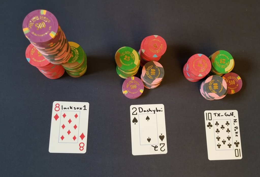Sorry you didnt win this round BUT everyone who busts out in round one will get a chance to be selected for a high card flip to win a chance to join the final table!Thanks for the game!