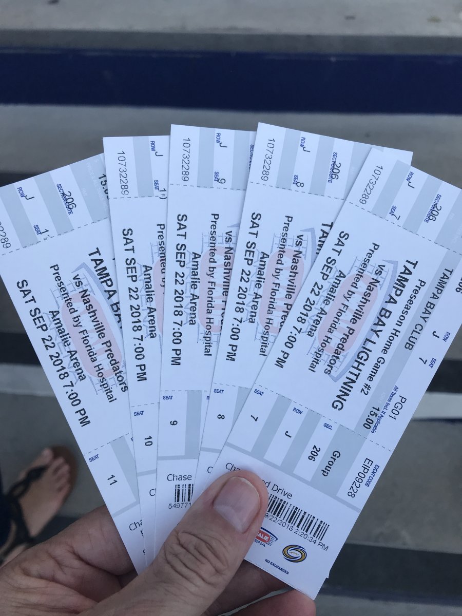 Well, here we go again. My first preseason game this year - Lightning vs Predators. Scored 5 club level seats by donating food to Feeding Tampa Bay. Let’s see where this season ends. :)