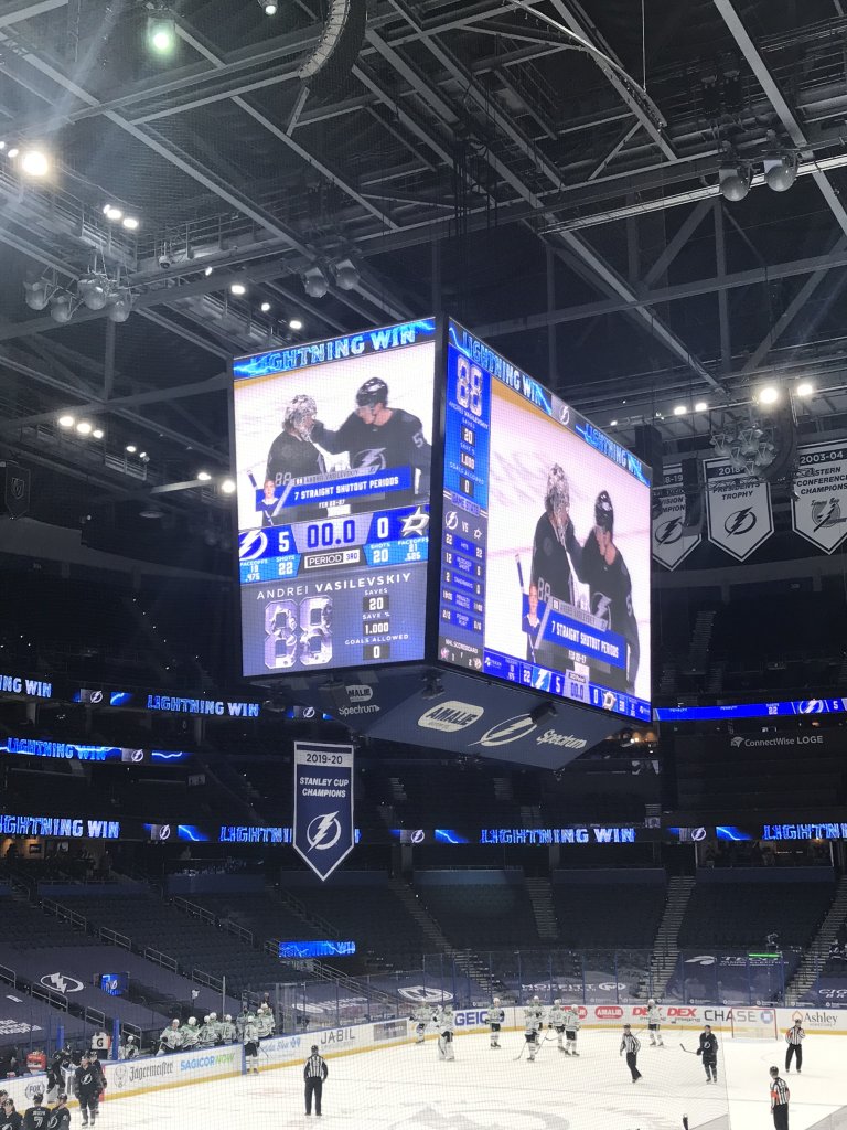 It was kinda weird being so empty, but no lines for food, drink, or the bathroom plus nobody sitting in front of you to block your view was great. Crowd noise was definitely more subdued than usual but there was some background noise piped in. You could hear the players voices on the ice very clearly.