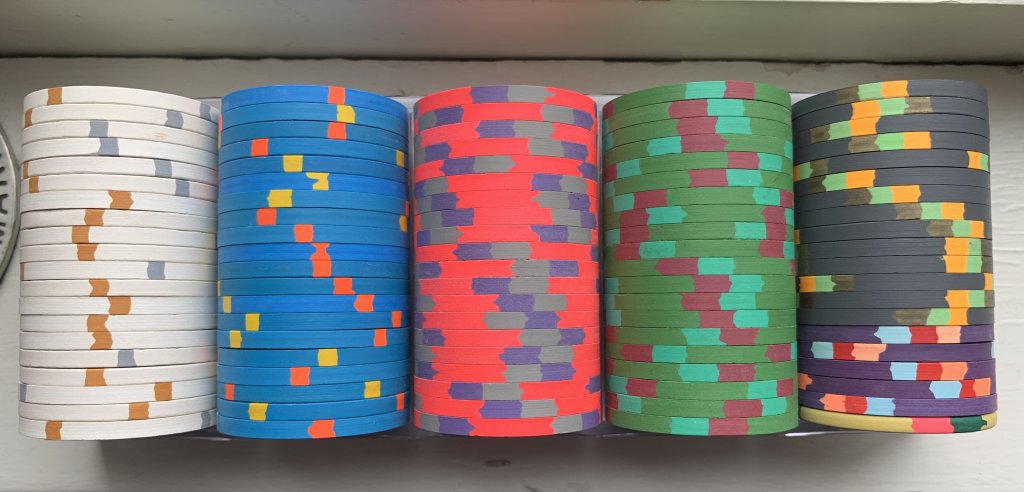 If I came down on hard times and needed to sell off everything, I tell myself these 2 BCC sets could handle my cash/tourney games and are just super beautiful chips and feel great to