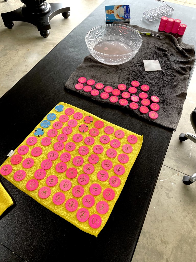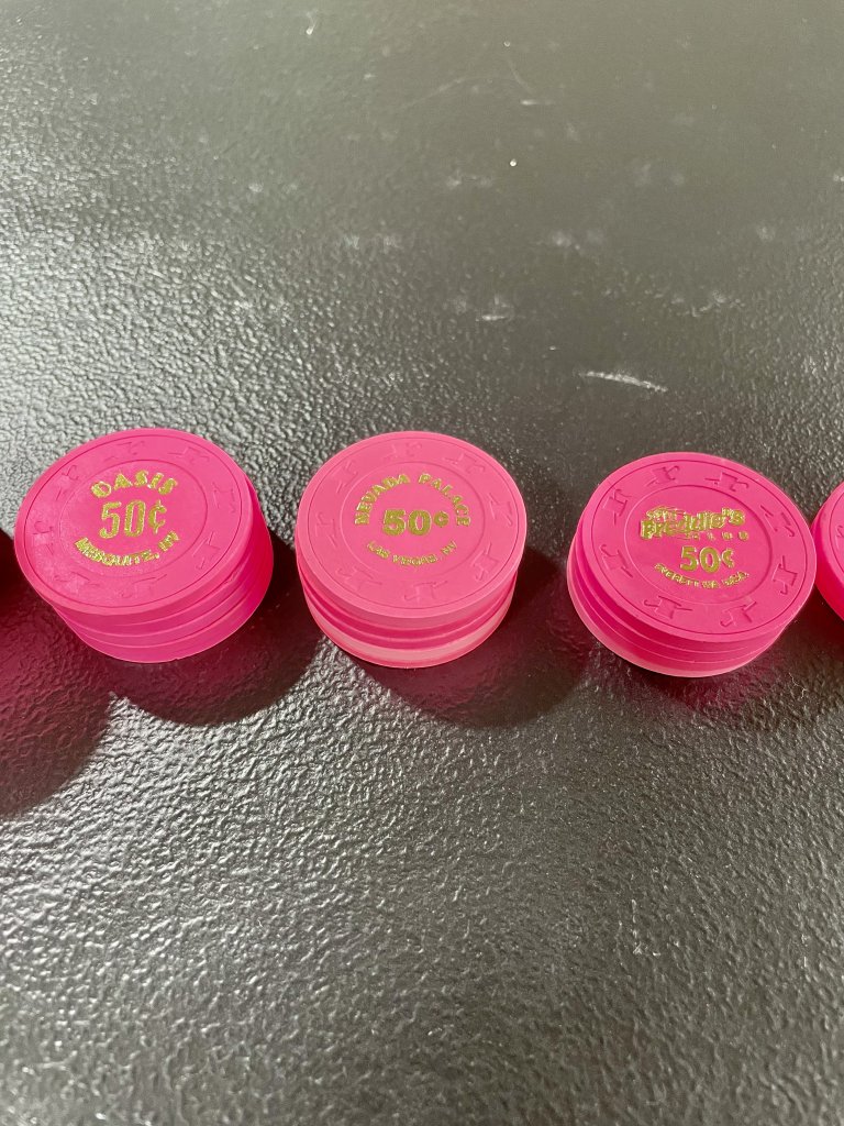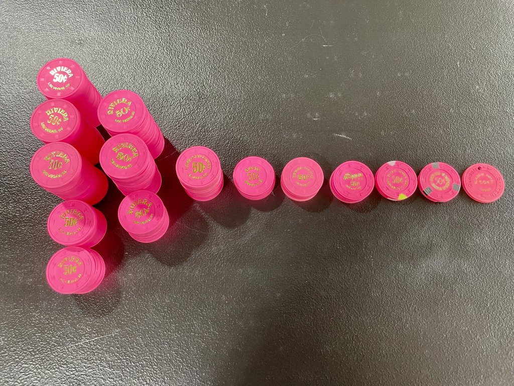 I may have missed it, but what condition chips are you looking for? Are you ok with chips with slightly rounded edges? (not bike tires, but may not stand on edge)Searching for more $5s & $1s…………