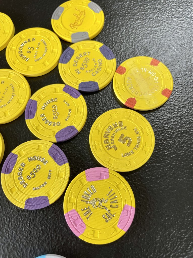 You want 100 *DIFFERENT* 50c hot stamp pink chips? I'm not sure that many exist. Then again, Rat Rod Goals!