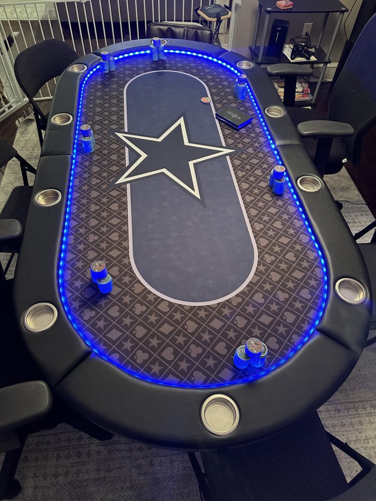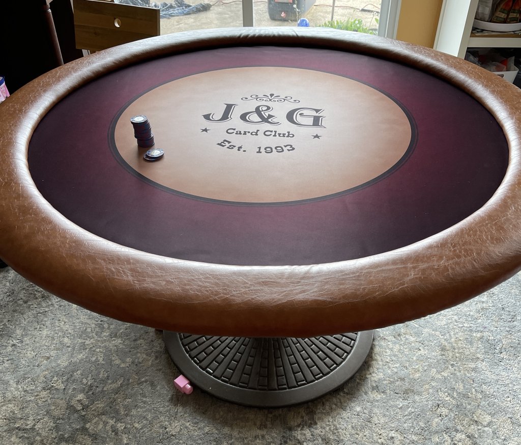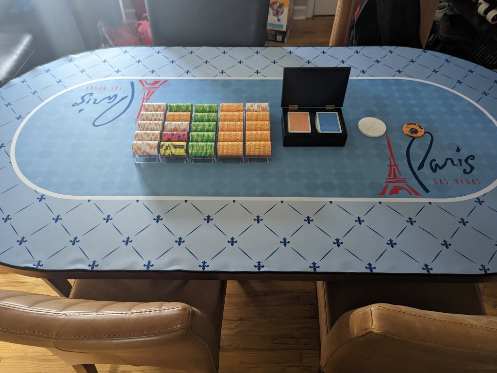 Just got one of my planned five - I will eventually have an easy-to-remove frame that will border my raised surface and topper, making it easy to swap toppers depending on which chip set I'm using, but this one is staying in place perfectly for this weekend's games. It looks incredible. Thanks @rjdev7 !