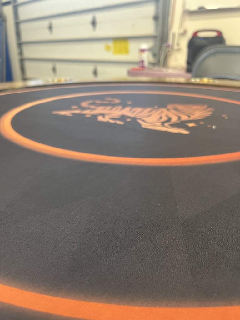 I think I posted this before, but I'm thinking about ordering a small topper to place on my current racetrack table (just lay it on top of my SSC when my NUTS chips come out). Do you think this would work? My playing surface is already slightly raised above the racetrack (because of the table padding under the SSC), so I'm worried it would look ridiculous putting even more height on the playing surface. If I do order one anyway, should I order the sewn border or no? Would the rubber bottom have enough grip to stay in place over my SSC?