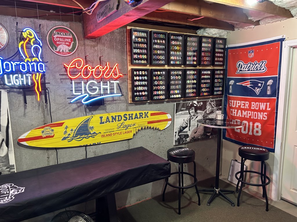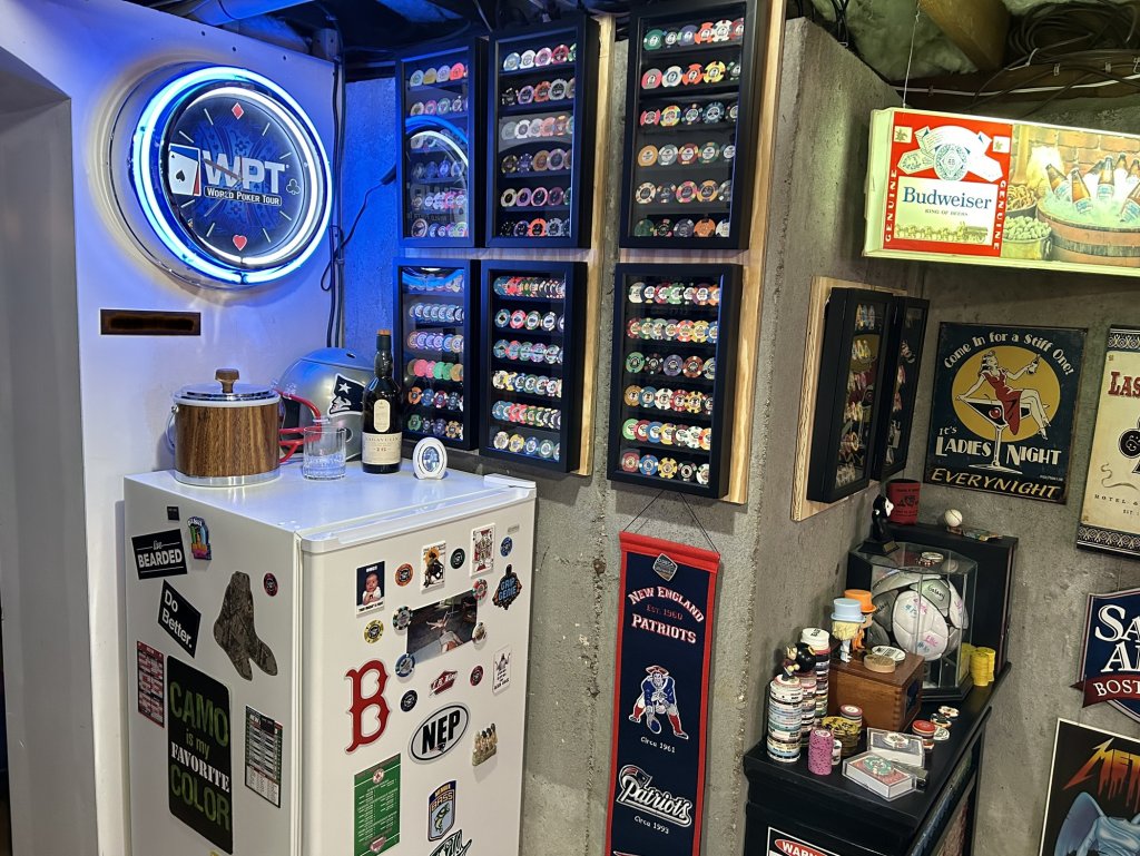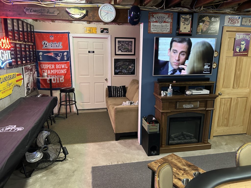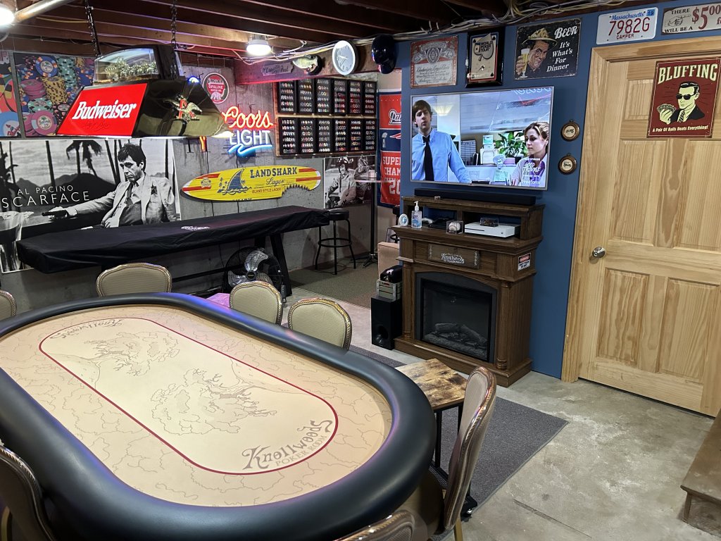 Beautiful space! I really love your custom knollwoods chips. The Office in the background makes up for all of the Patriots stuff :LOL: :laugh: