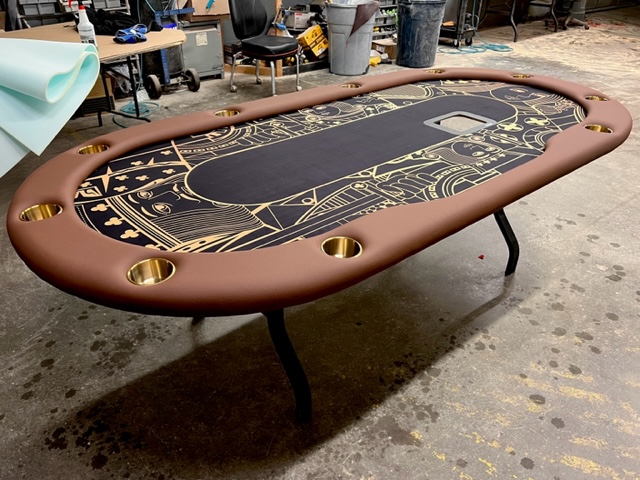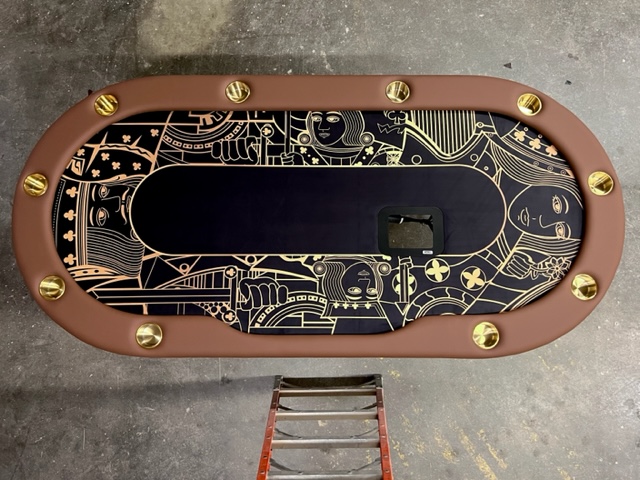 Just got the photos of my new gorilla gaming poker table. Can't wait for it to arrive and put it in play! I got it with the shuffle tech mounted in the table. I know some people don't like the shuffle tech but I think it is such a huge upgrade as I've been using it in a side cart for a few months.