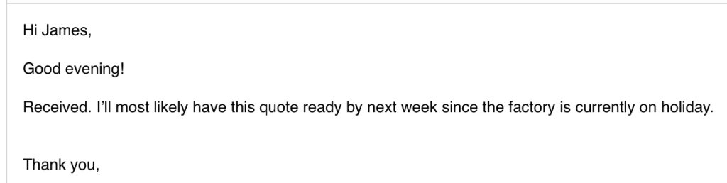 Received confirmation that the wire transfer has been completed and our order is officially placed. Also found out that it could take longer for the order to be fulfilled (anywhere from 1-2 weeks) than to get the order shipped to my door (3-5 days).