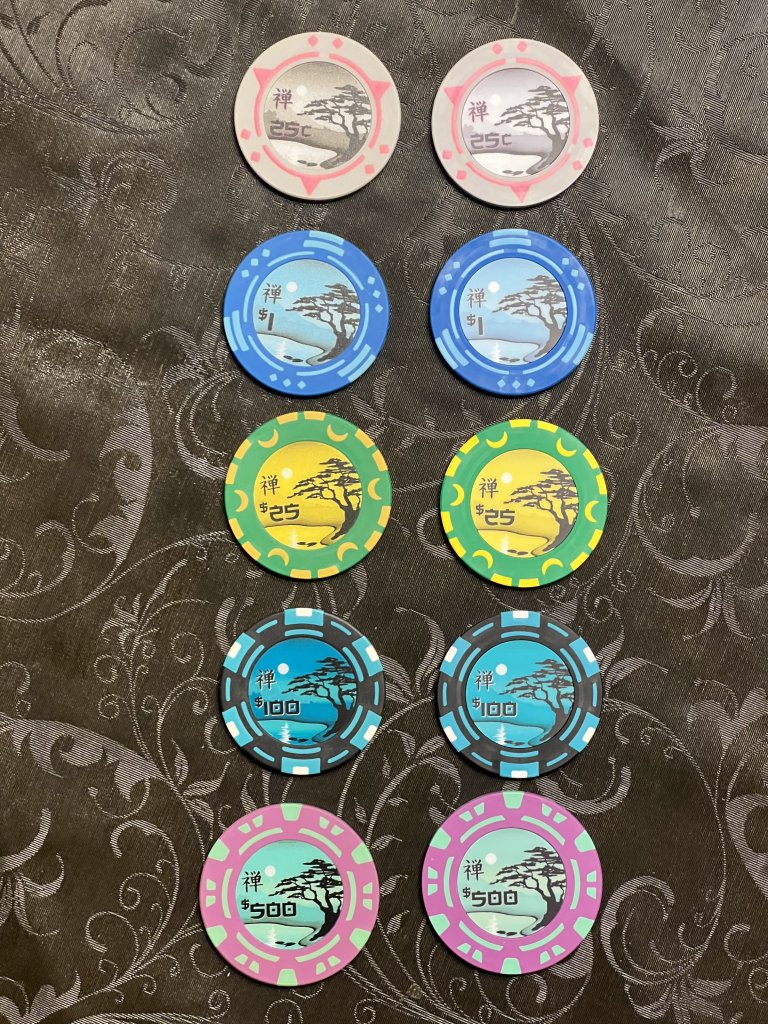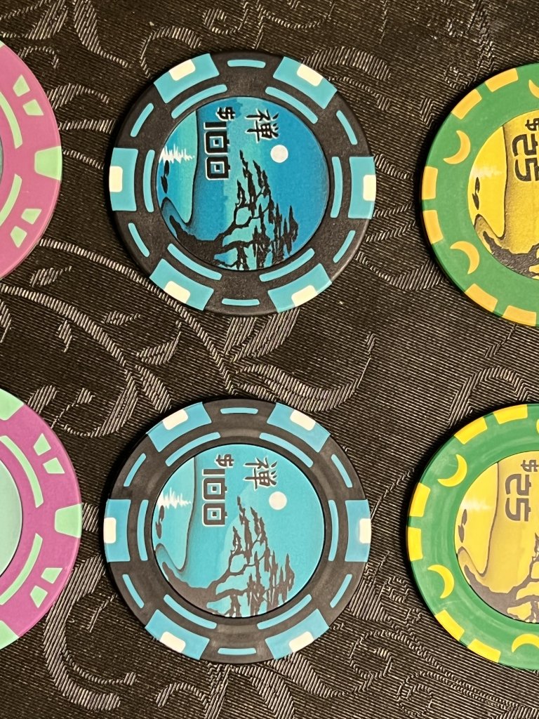 So I got some close up shots here, the side by side are old zen vs new(old left new right) for the denominations I have on hand. The older chips are a bit different, the plastic has dulled and the inlay has darkened or maybe the colors are slightly different nowView attachment 895179View attachment 895180View attachment 895181View attachment 895182View attachment 895183View attachment 895184View attachment 895185. Either way the new ones look fantastic and pretty close to the old especially given this is the first new order in over 10 years(I think)