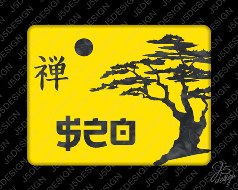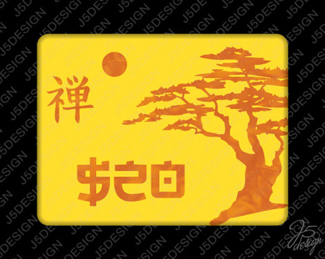 The yellow-and-black is the best choice for a stand-alone plaque, or a plaque that might be used with a generic set. But as a companion to the first three chips in the Zen set, I think it's too strong and too bold. The chips exude a certain calmness and tranquility, and I think the softer colors of the purple-and-pearl plaque are a better match.
