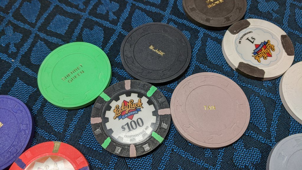 How can I best find the colors used on the Lucky Lady 100s? I tried the chip guide, but I have no idea where that casino is located or if it is even a real place.