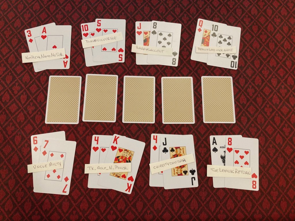 I will do 2 tables of hold ‘em to get 2 winners. I will put all the entries into a random number generator to get 8 players at each table. The winning hand on each table will win the sample set. I’ll cover shipping in the US, international winners will be responsible for shipping costs.