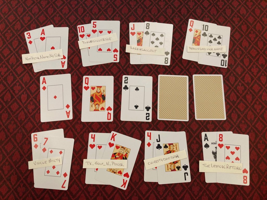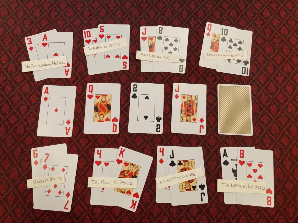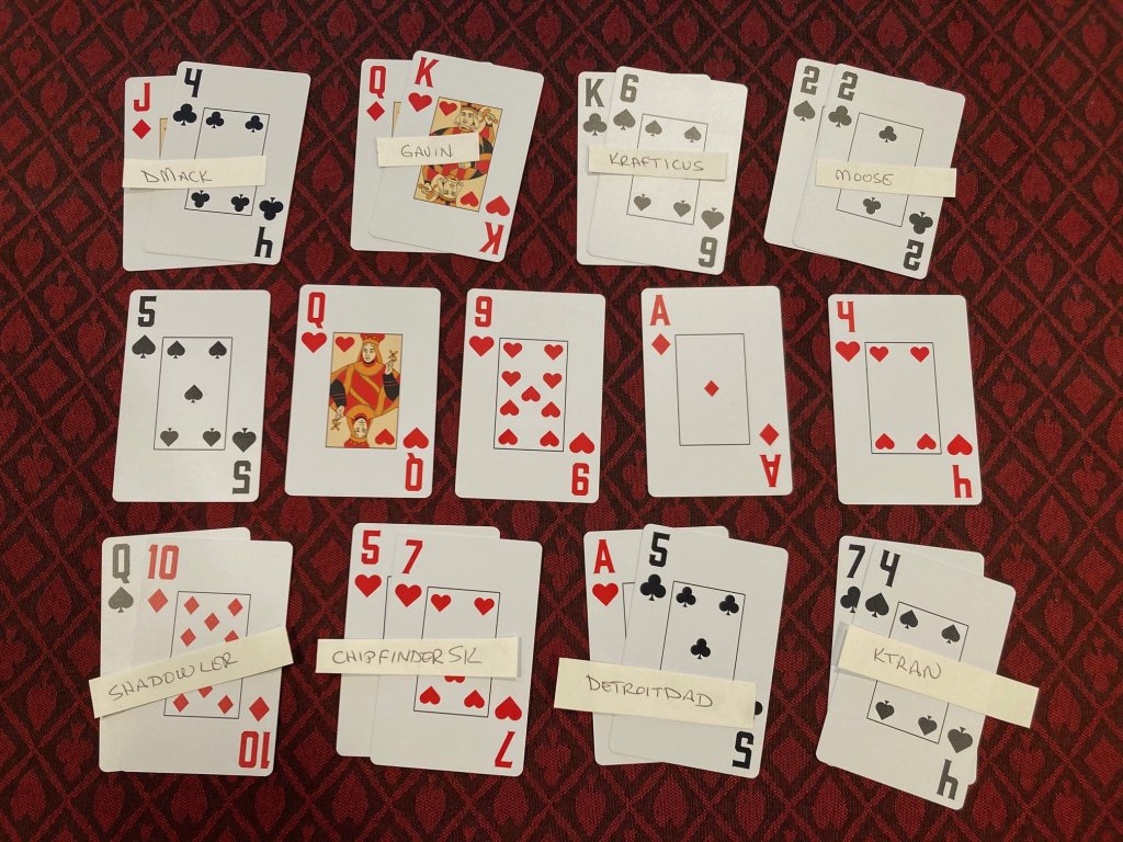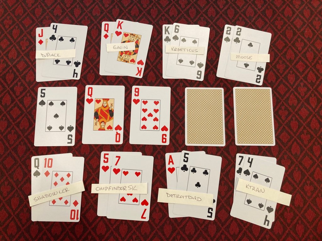 I will leave the entry open until Sunday, at the end of the Lions game. I will plan to draw the names and deal the cards on Monday the 22nd.