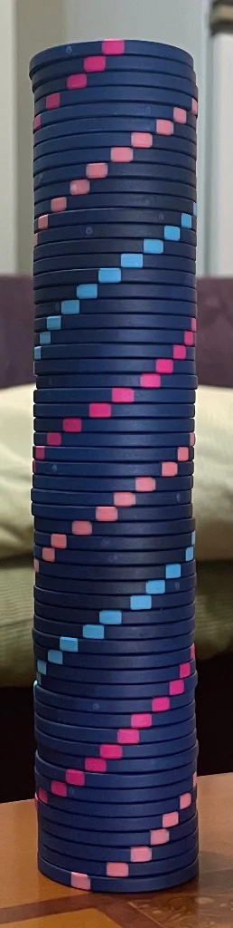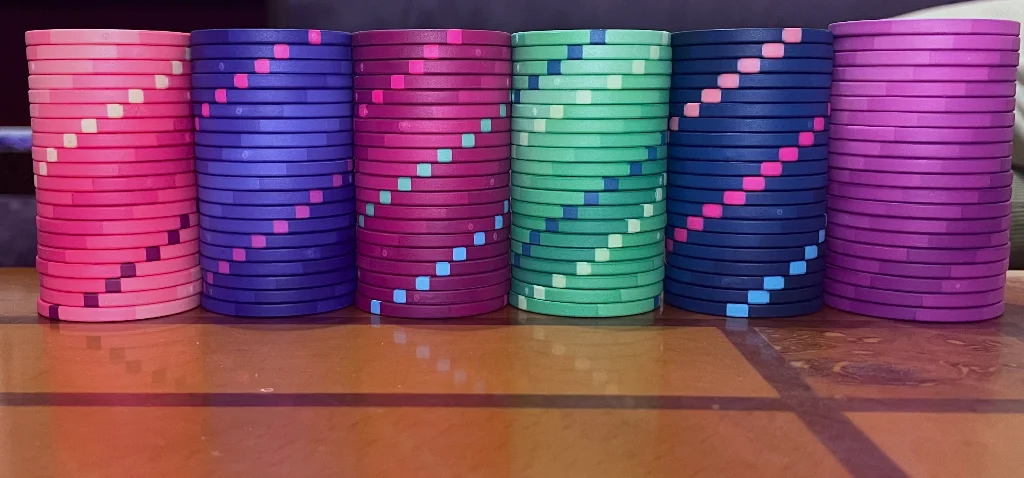 These are all nitpicks though. Other than the dirty stacks, I'm not too bothered, and am just happy to have a nice set of non abs chips with some nice colours (that I designed :D).