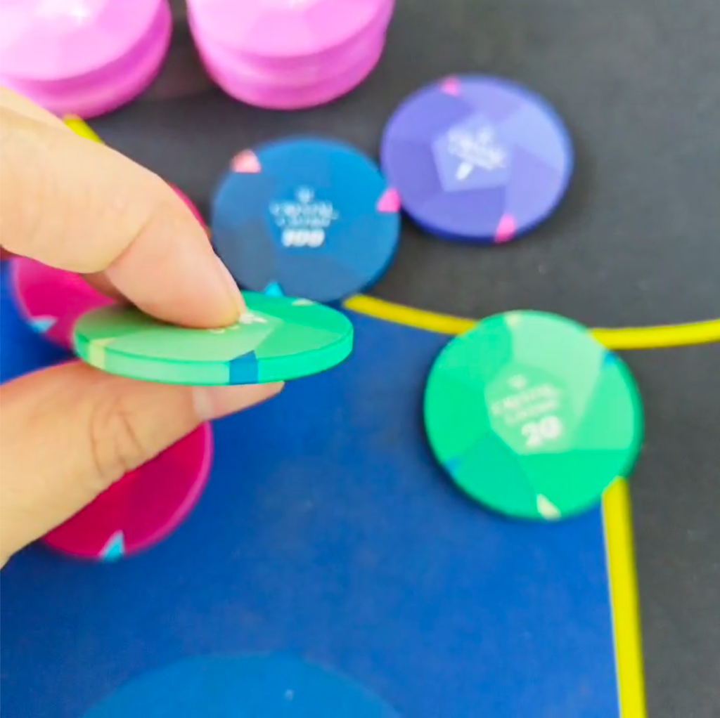 * Even using illustrator, colours don't print exactly the same as they show on screen. Since i talked through alibaba directly, i could pay them to make a sample for me and so i could tweak some colour issues (until i yolo'd the 100 chip lol). Photos still are not perfect for seeing how a colour turns out as the lighting *heavily* affects how they show. i should paid them to ship the sample to me (if they do that). IIRC Justin doesnt forward samples to Alibaba.
