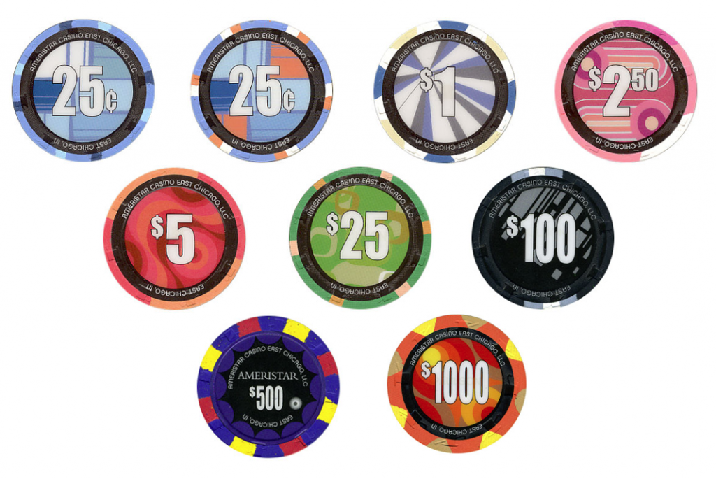 I own most of the chips through the $5 chips now, but I love all of them. I doubt I ever get the $100s and above due to cost/availability, but the full 13 chips in a sample would be worth framing. Simple inlay, and the denomination color matches the edgespot color on almost all the chips. The earlier chips are leaded. These are not THC chips, but the house mold has a large rim so they handle like a THC. Inlays are textured and most are shaped, just like PCAs. This whole rack is lit, woke, sick, hip, and cool.