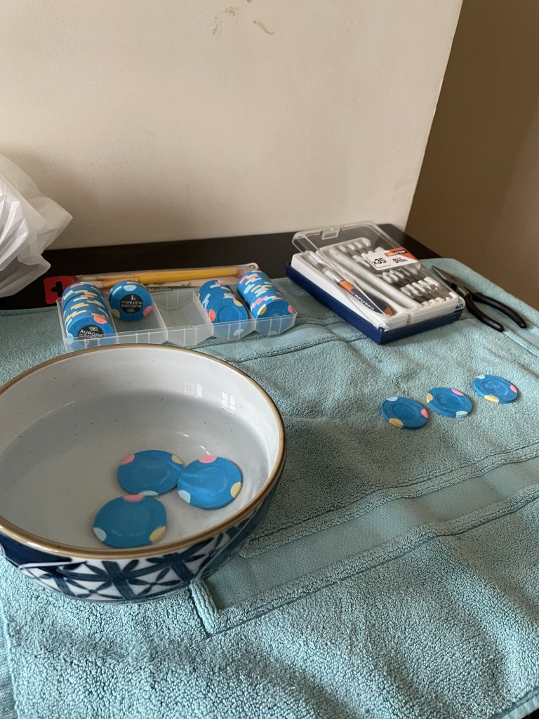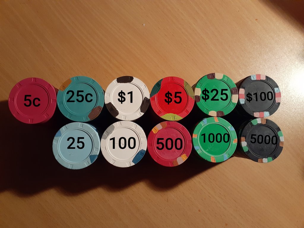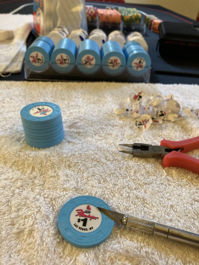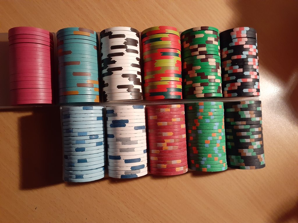 I decided to make my cash set with better condition chips and my tournament set with non traditional colors and casino grade. This way, I could buy 3 tables worth of chips cheaper than if I got all nice ones, as well as being easier colors to find.
