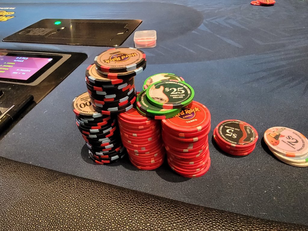 Check to maniac who pots, other guy folds. I did deep and make the call. He just has T982 and we hold to bust him