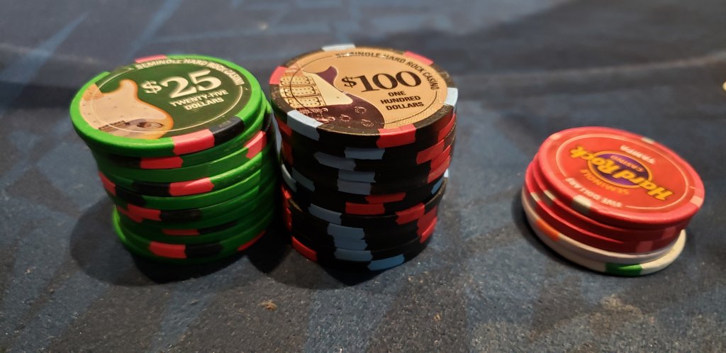 Some late night PLO. Tampa Hard Rock only has 2 cashier windows open and didn't see any brush selling chips